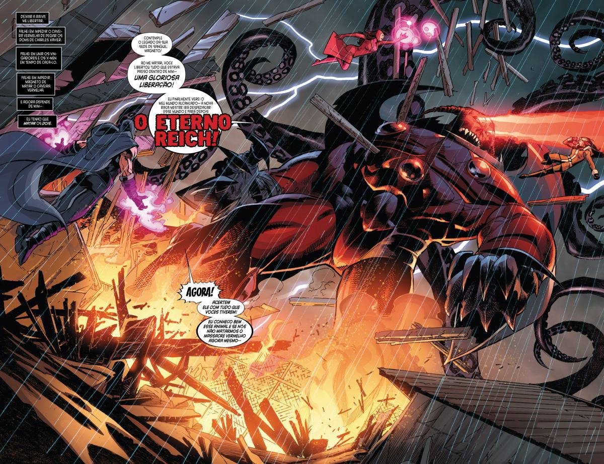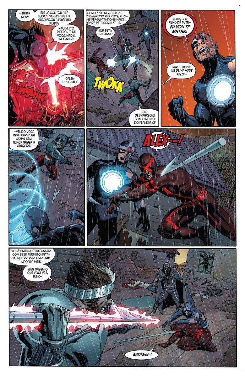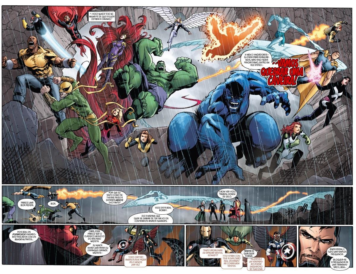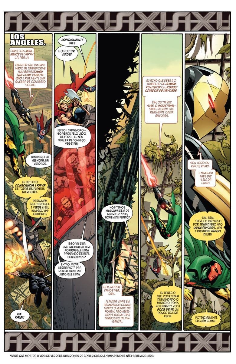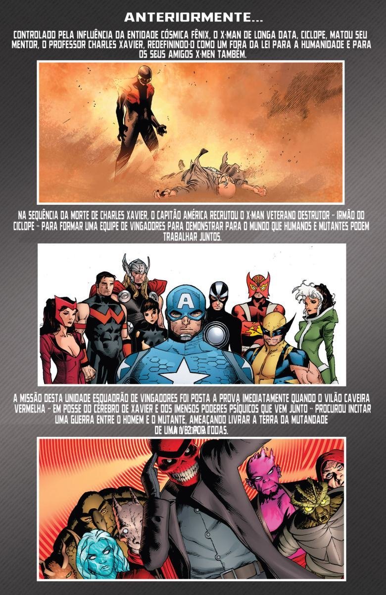 Depois de uma guerra entre Vingadores e X-Men, a moralidade de muitos heróis é invertida devido a Red Onslaught. Heróis como Capitão América e Homem de Ferro se tornam vilões, enquanto vilões como Magneto e Loki começam a agir como heróis. "Eixo" redefine as identidades e papéis desses personagens, afetando o futuro da equipe.