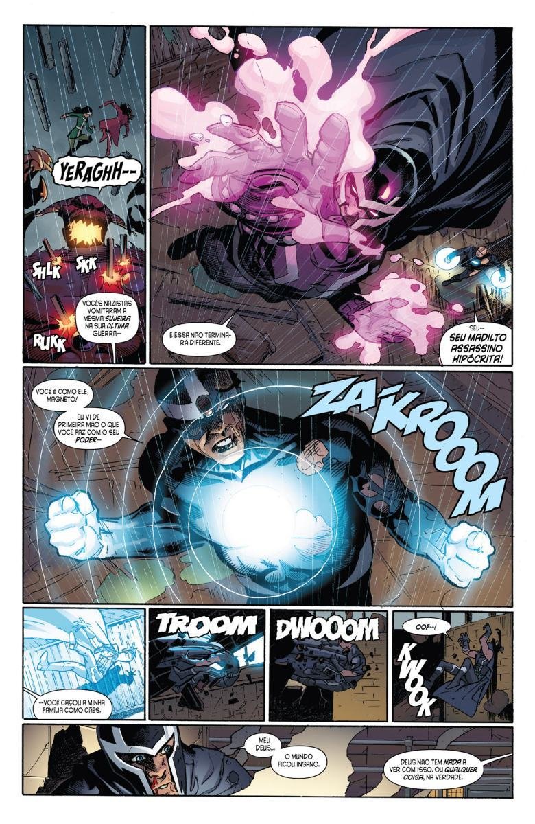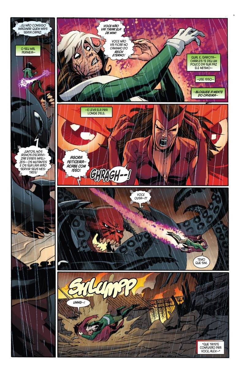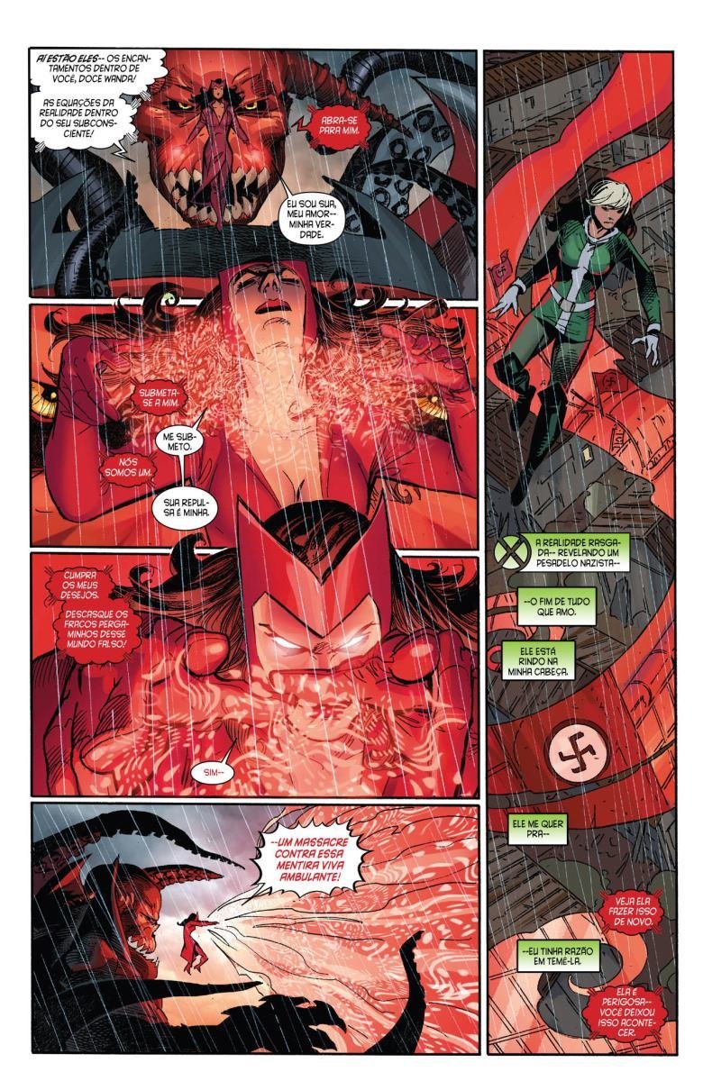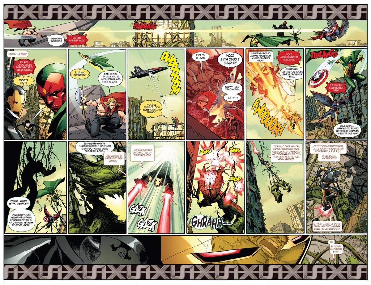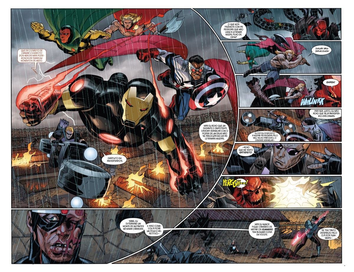Depois de uma guerra entre Vingadores e X-Men, a moralidade de muitos heróis é invertida devido a Red Onslaught. Heróis como Capitão América e Homem de Ferro se tornam vilões, enquanto vilões como Magneto e Loki começam a agir como heróis. "Eixo" redefine as identidades e papéis desses personagens, afetando o futuro da equipe.